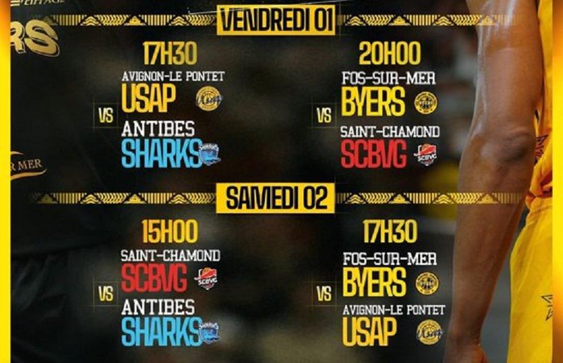 Le coup d’envoi sera donné ce vendredi dès 17h30 avec le duel entre Antibes et l’USAP qui sera suivi du match entre Fos Provence Basket et Saint-Chamond à partir de 20h. Le lendemain, Saint-Chamond et Antibes s’affronteront à 15h. Fos-sur-Mer – Avignon-Le Pontet suivra à 17h30 (entrée gratuite).