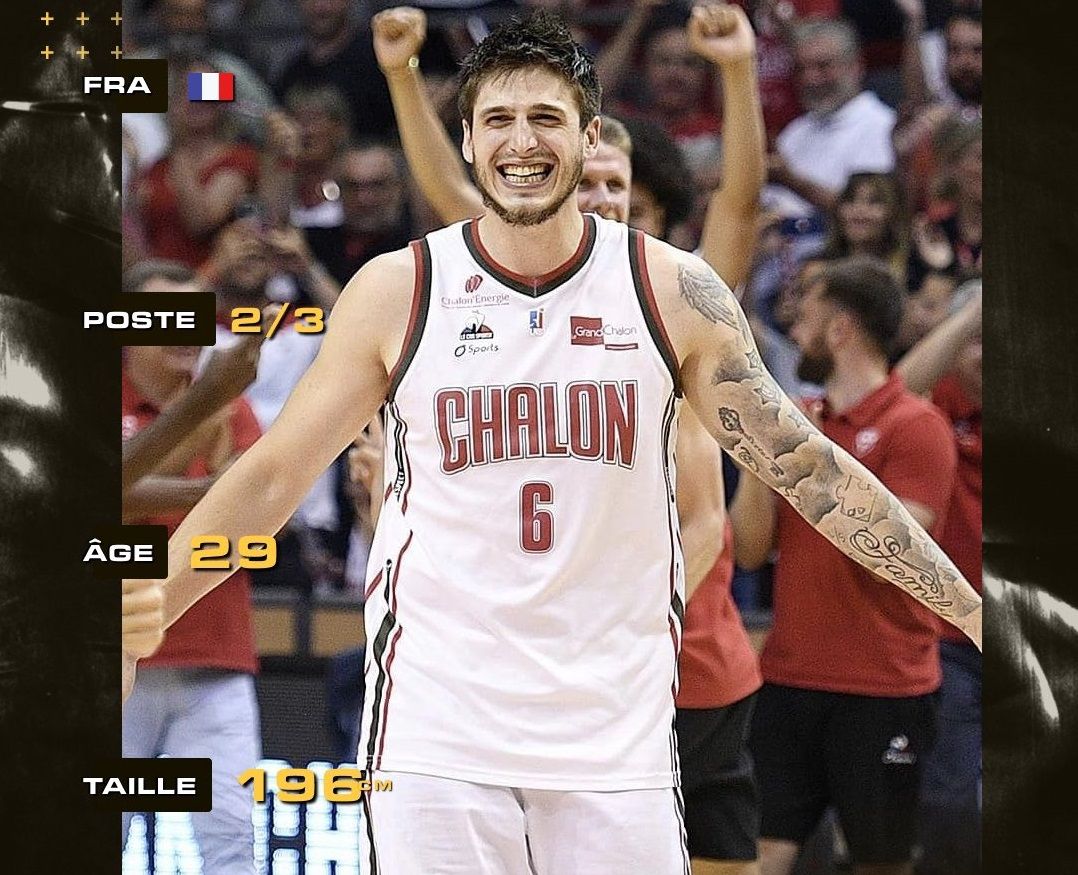 Arrière-ailier polyvalent, capable de tout faire sur un terrain, Damien Bouquet sort de deux grosses saisons à l’Elan Chalon, confirmant cette saison en atteignant son record de points en moyenne en carrière (9.8), avec un joli 38.4% de réussite à 3-points en 4.1 tentatives par match.