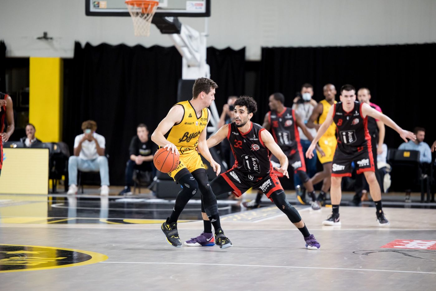 Dos au mur, les BYers ont repris leurs esprits en alignant un 14-4, série lancée par les deux missiles à 3 points de Zach Peacock et conclue par ceux d’Edouard Choquet et D’Mitrik Trice (29-21). Les « Black&Yellow » ont repris des couleurs, en se nourrissant à nouveau de leur défense et grâce à leur agressivité en attaque, à l’image des deux dunks de Bodian Massa pour ramener l’écart à -6 à la pause (41-35).
