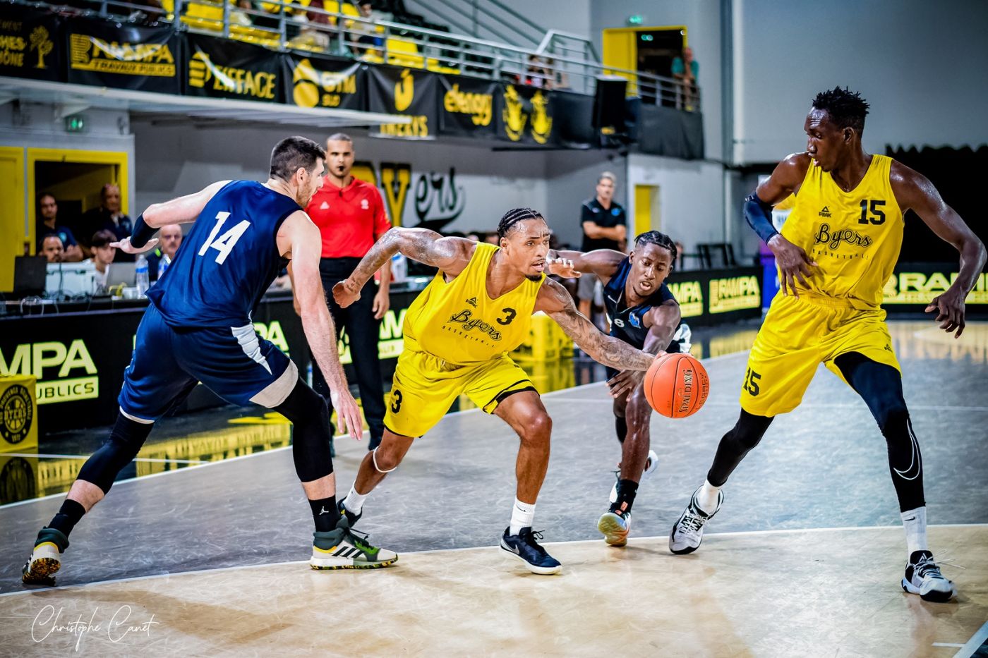 Pour cette grande première de la saison, en effectif réduit, les « Black&Yellow » ont répondu présent. En prenant le meilleur en première mi-temps grâce une grosse défense et de l’adresse en attaque, à l’image des deux paniers à 3-points de Lucas Bourhis (10 points, 7 passes décisives) et Robert Turner III (21 points, 5 passes décisives) pour conclure le premier quart-temps (16-17).