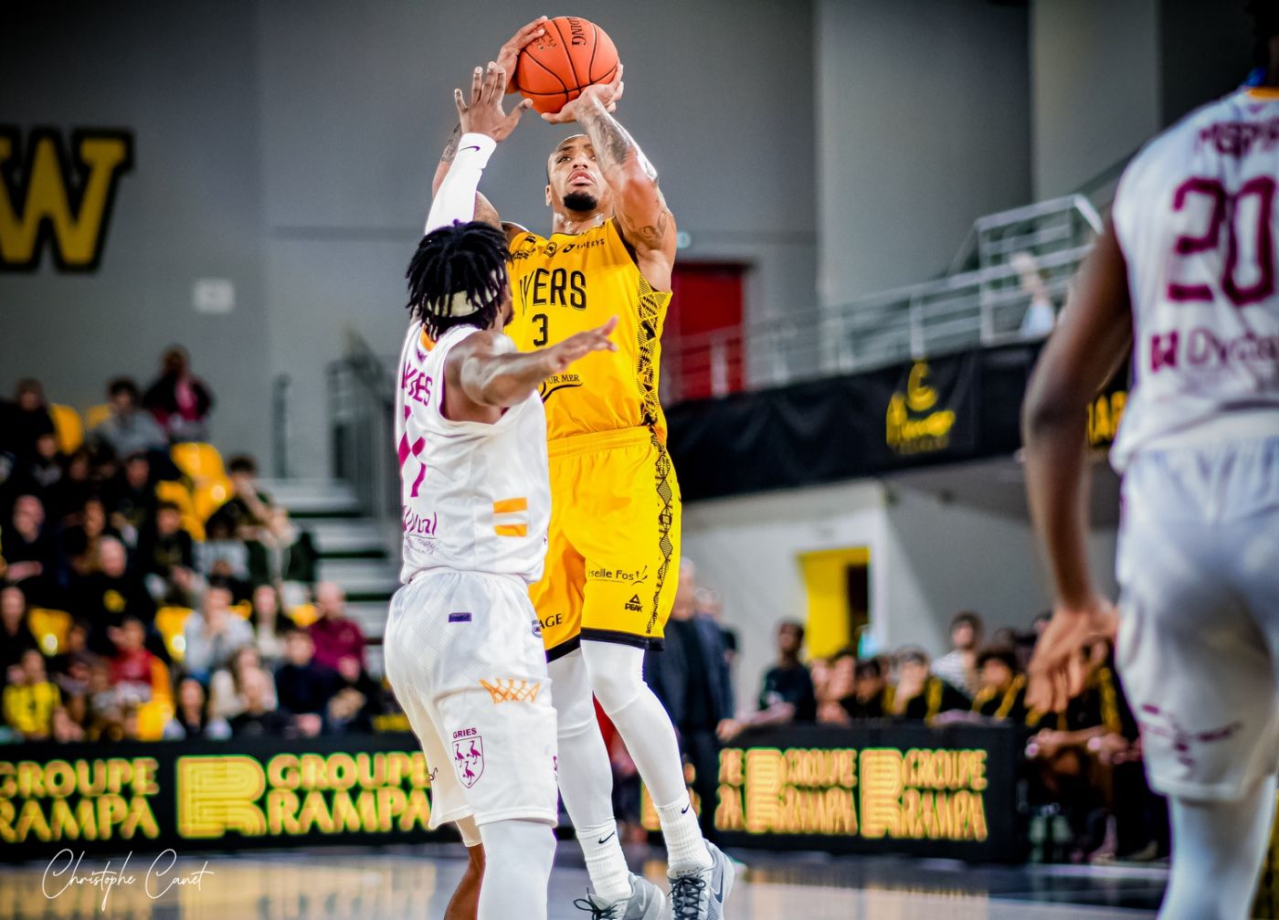 Les BYers ont en effet frappé fort d’entrée avec un Willan Marie-Anaïs brillant dans les airs et un Robert Turner III auteur de quatre paniers à 3-points pour faire passer l’écart à +15 dès la fin du premier quart-temps (14-29) ! Celui-ci est monté jusqu’à +18 sur un 3-points de Damien Bouquet venant valider le départ canon des “Black&Yellow” (16-34).